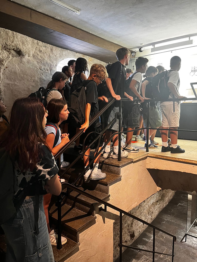 Wir haben viel über das damalige Leben, über Folterungen und Hexen erfahren. Wenn man jemanden für schuldig hielt, wurde er solange gefoltert bis er es gestand, auch wenn er unschuldig war. Zu Beginn wurden erst einmal „leichtere“ Folterungsgeräte angewendet, wie zum Beispiel Daumenschrauben, bei denen so lange Druck auf die Finger ausgeübt wurde, bis sie zu bluten begannen. Wenn immer noch kein Geständnis abgelegt wurde, dann wurde zu härteren Folterungsmitteln gegriffen, z.B. die Streckbank, bei der man an den Armen und Beinen langgezogen wurde.